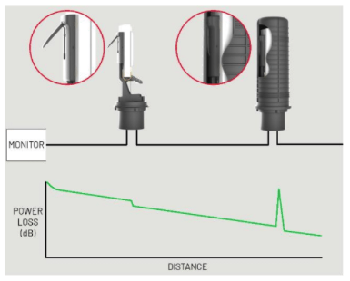 Each passive sensor introduces a reflective event on a monitored dark or live fiber. When the enclosure is closed, the reflective event is present.If the enclosure is opened, the reflective event immediately disappears, indicating the splice enclosure has been opened. Because the reflective event is passively generated at the sensor and remotely monitored from a Central Office orNetwork Operations Center (NOC), any attempt to bypass or manipulate the signal is highly difficult—ifnot virtually impossible.